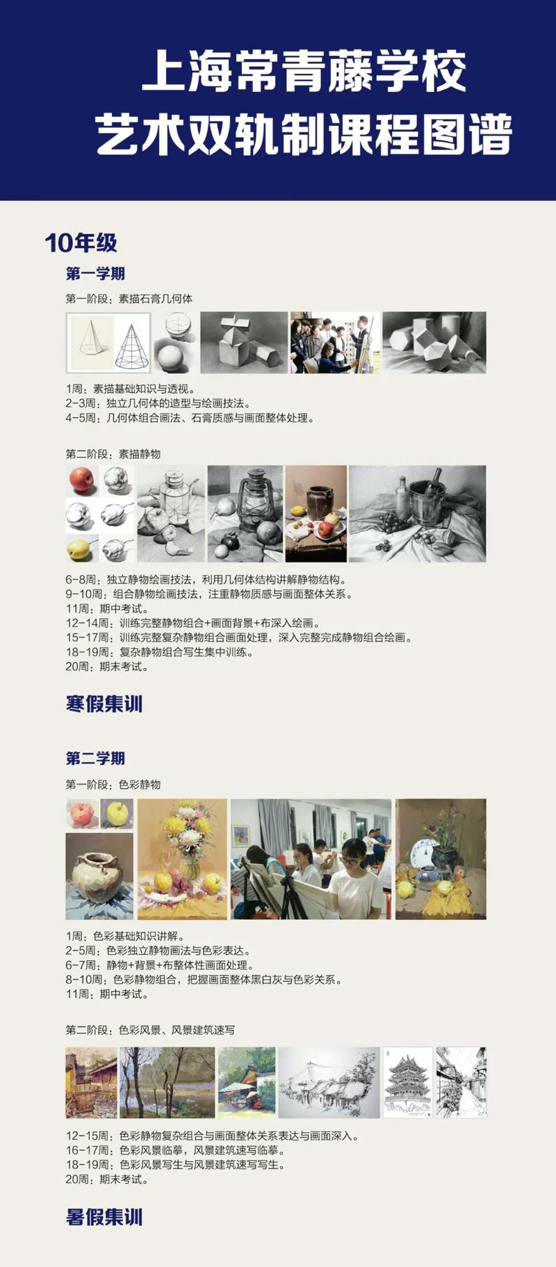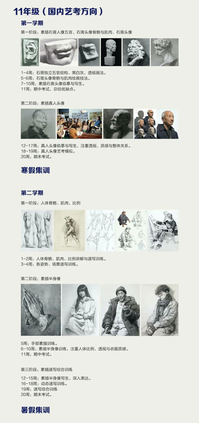 三、美术方向双轨制艺术高中课程设置